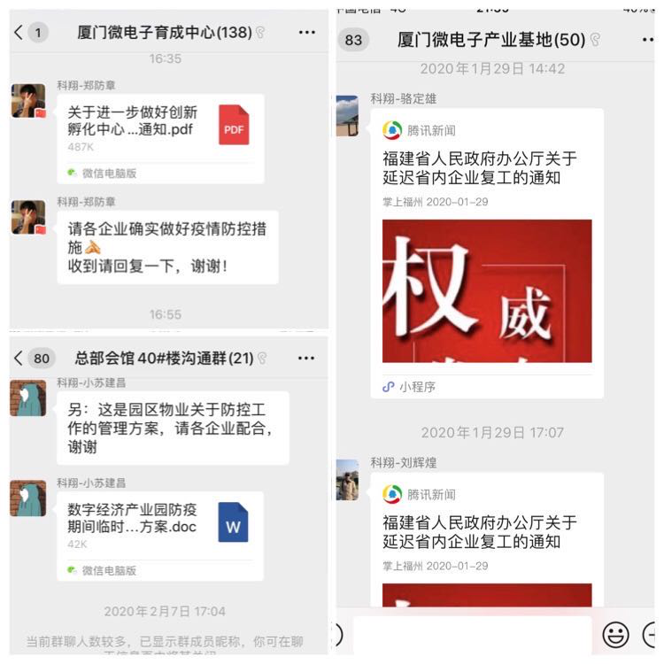 廈門科翔高新產(chǎn)業(yè)發(fā)展有限公司深入貫徹落實(shí)市委市政府統(tǒng)一部署,一手嚴(yán)抓疫情"硬防控",一手勤抓復(fù)工生產(chǎn)"軟服務(wù)",全力保障園區(qū)企業(yè)有序復(fù)工生產(chǎn)。