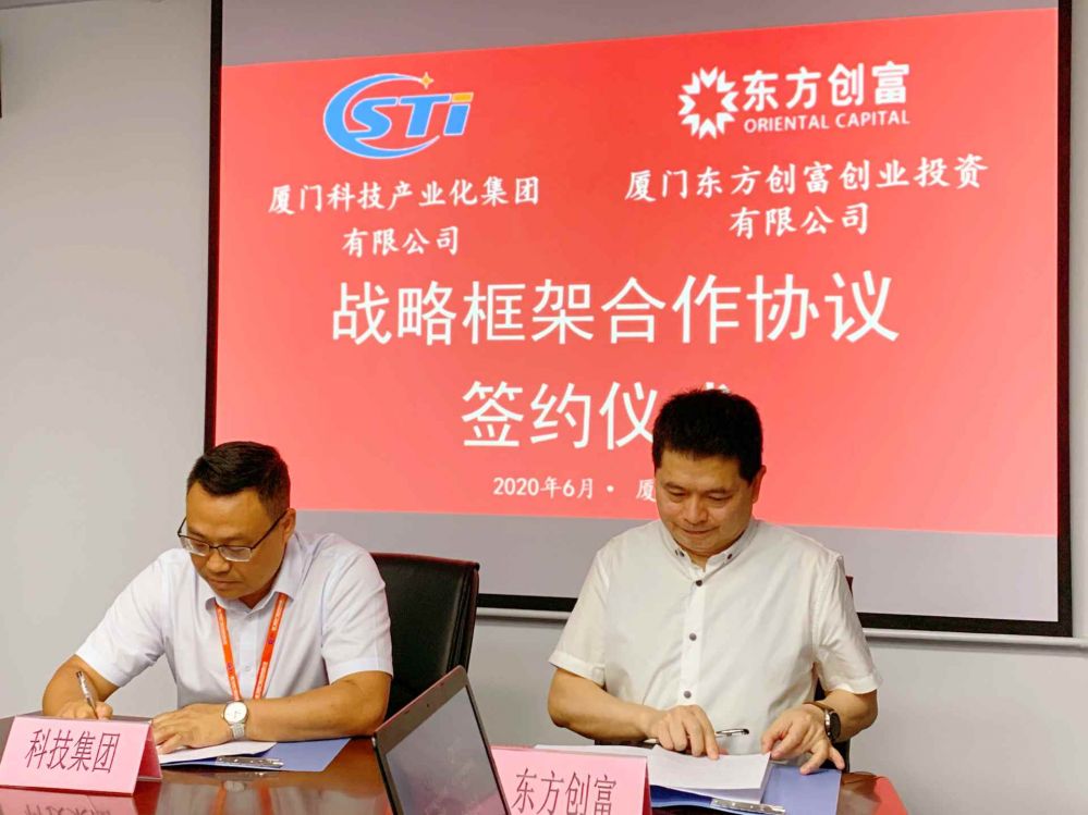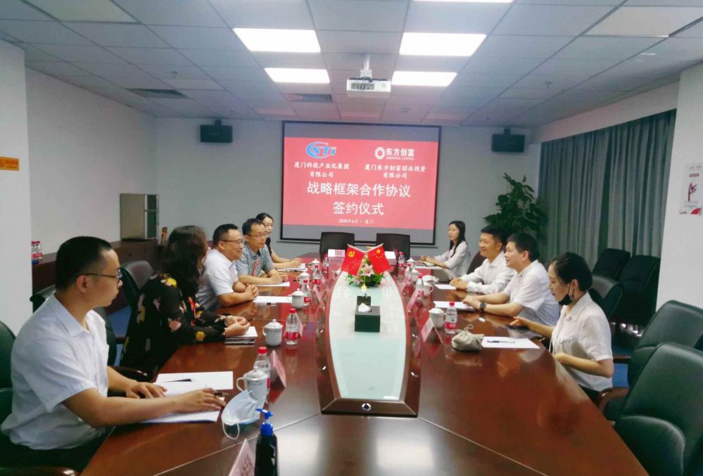 6月16日上午,廈門科技產(chǎn)業(yè)化集團(tuán)有限公司(以下簡(jiǎn)稱“科技集團(tuán)”)與廈門東方創(chuàng)富創(chuàng)業(yè)投資有限公司(以下簡(jiǎn)稱“東方創(chuàng)富”)就共同創(chuàng)立啟航創(chuàng)富【未來科技】投資基金在科技集團(tuán)總部舉行戰(zhàn)略合作簽約儀式??萍技瘓F(tuán)黨總支書記、董事長(zhǎng)謝勇堅(jiān)與東方創(chuàng)富董事長(zhǎng)呂丹東代表雙方進(jìn)行簽約,科技集團(tuán)常務(wù)副總經(jīng)理方永松、副總經(jīng)理張蕾,東方創(chuàng)富副總經(jīng)理李榮源等共同出席簽約儀式。