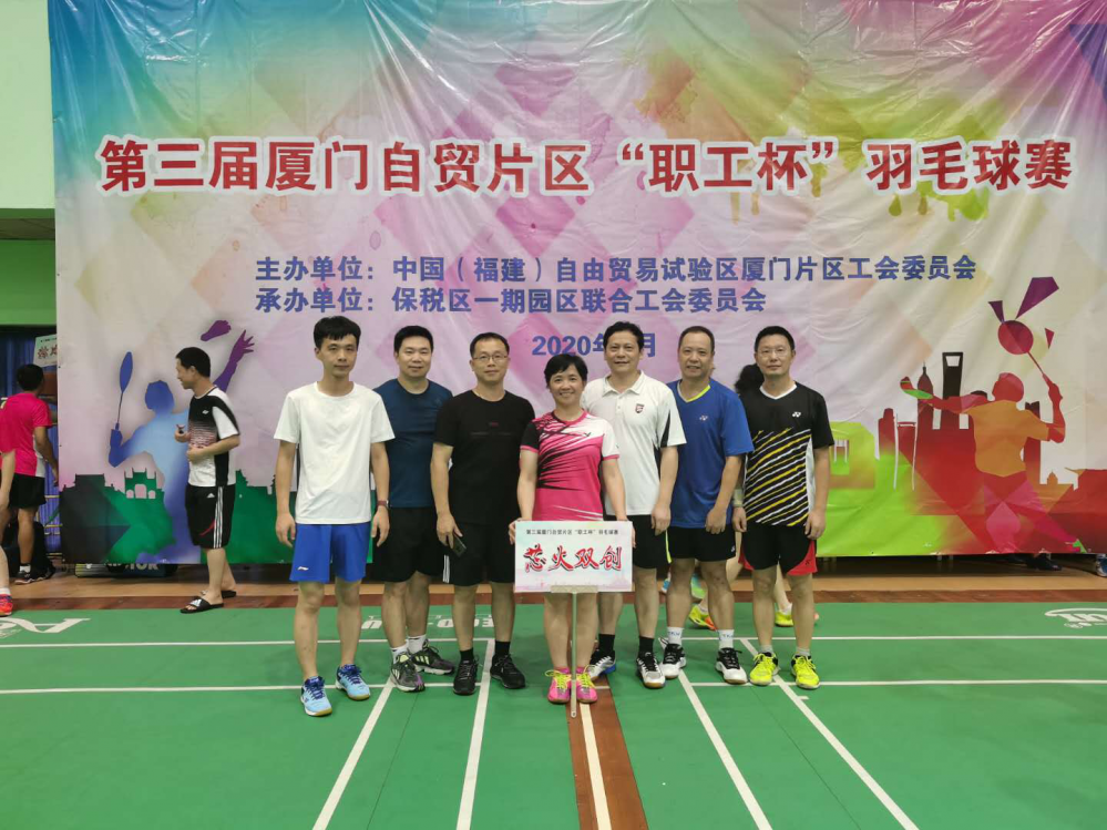 8月1日,第三屆廈門自貿片區(qū)“職工杯”羽毛球團體賽在廈門市體育中心羽毛球館舉行。接自貿區(qū)工會邀請,科技集團工會和科湖公司工會積極響應號召,由集團常務副總經理(主持工作)方永松和集團副總經理、工會主席梁旭帶領職工代表組成“芯火雙創(chuàng)聯隊”參加比賽。