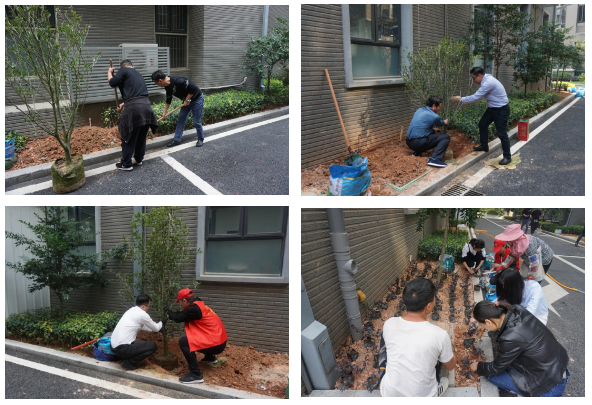 集團(tuán)干部職工三五人一組相互配合,分工協(xié)作,掄鋤挖坑、扶直樹苗、揮鍬培土;花圃挖坑種花,鋪平草皮,踩實(shí)壓緊,配合默契而有序。大家栽得認(rèn)真,干得賣力,顧不上汗水打濕衣裳,也顧不上泥濘裹滿了鞋履。經(jīng)過1個(gè)多小時(shí)的努力,綠化樹種在大家的齊心協(xié)力下栽種完成。