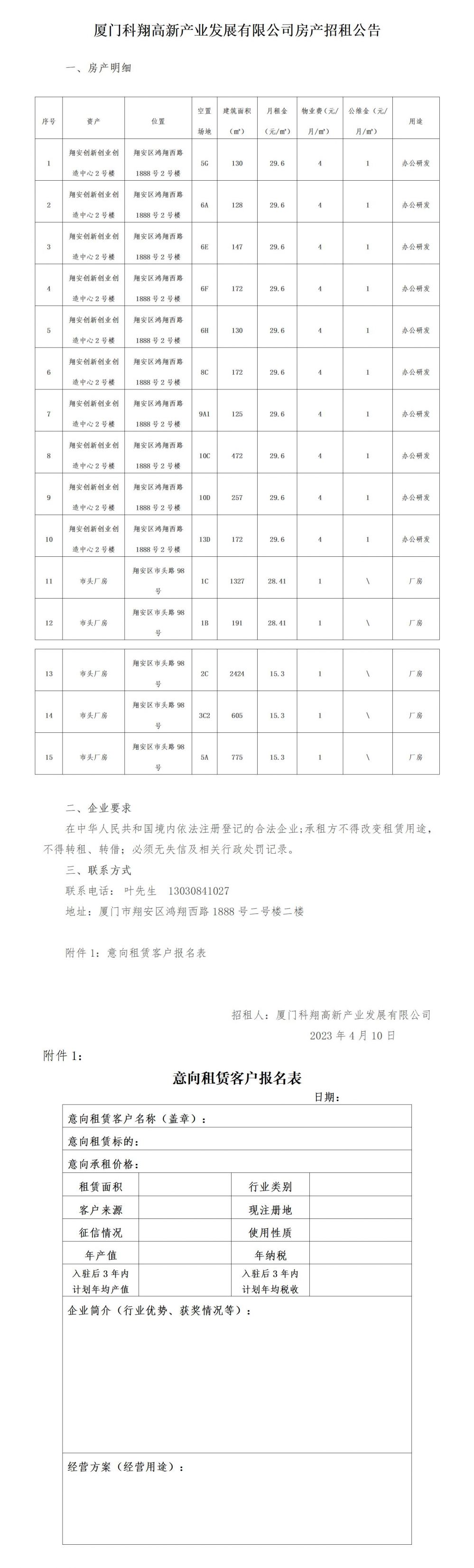 廈門科翔高新產業(yè)發(fā)展有限公司房產招租公告 欄目:通知公告 來源:廈門科技產業(yè)化集團 時間:2023-04-11 熱度:182 廈門科翔高新產業(yè)發(fā)展有限公司房產招租公告4.10(1).doc