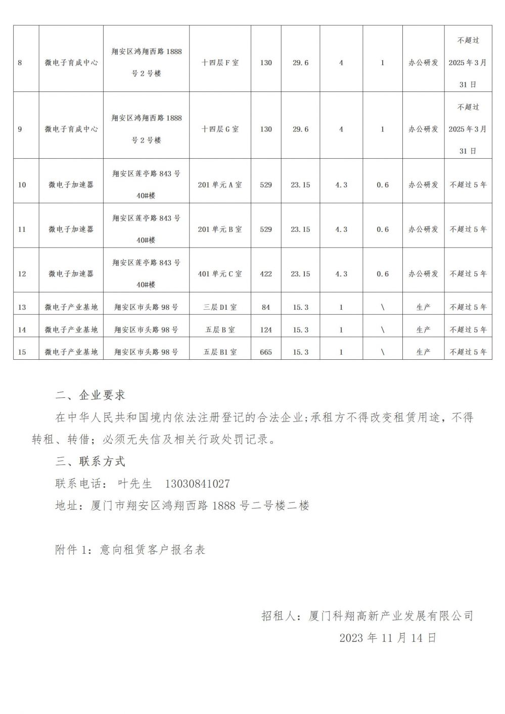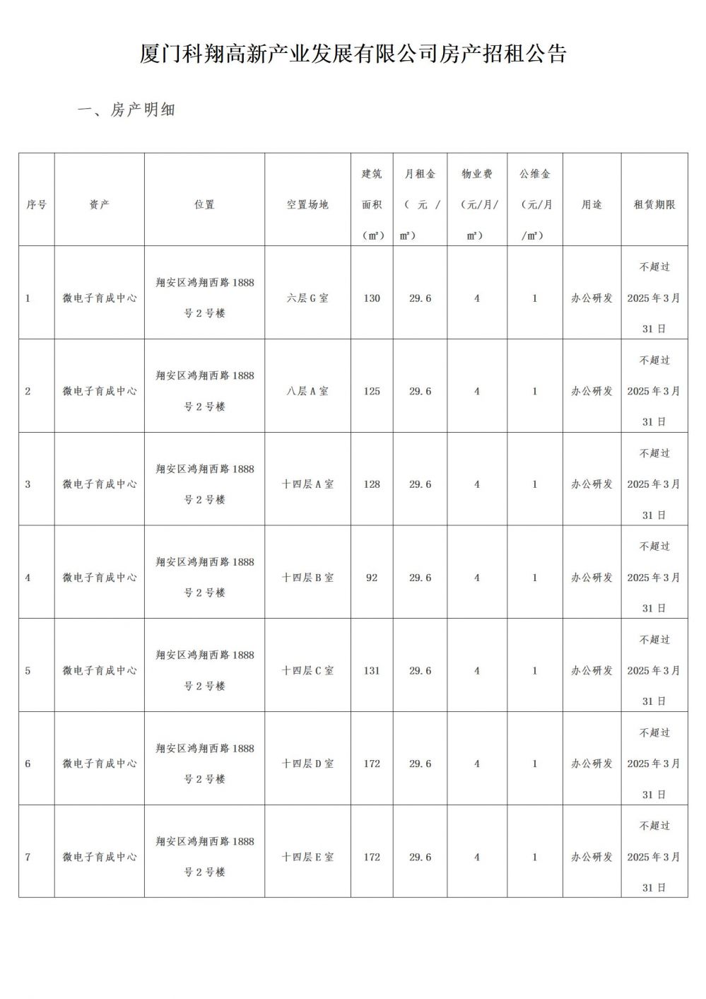 廈門科翔高新產(chǎn)業(yè)發(fā)展有限公司房產(chǎn)招租公告 欄目:通知公告 來源:廈門科技產(chǎn)業(yè)化集團(tuán) 時(shí)間:2023-11-15 熱度:178 廈門科翔高新產(chǎn)業(yè)發(fā)展有限公司房產(chǎn)招租公告2023.11.14.docx