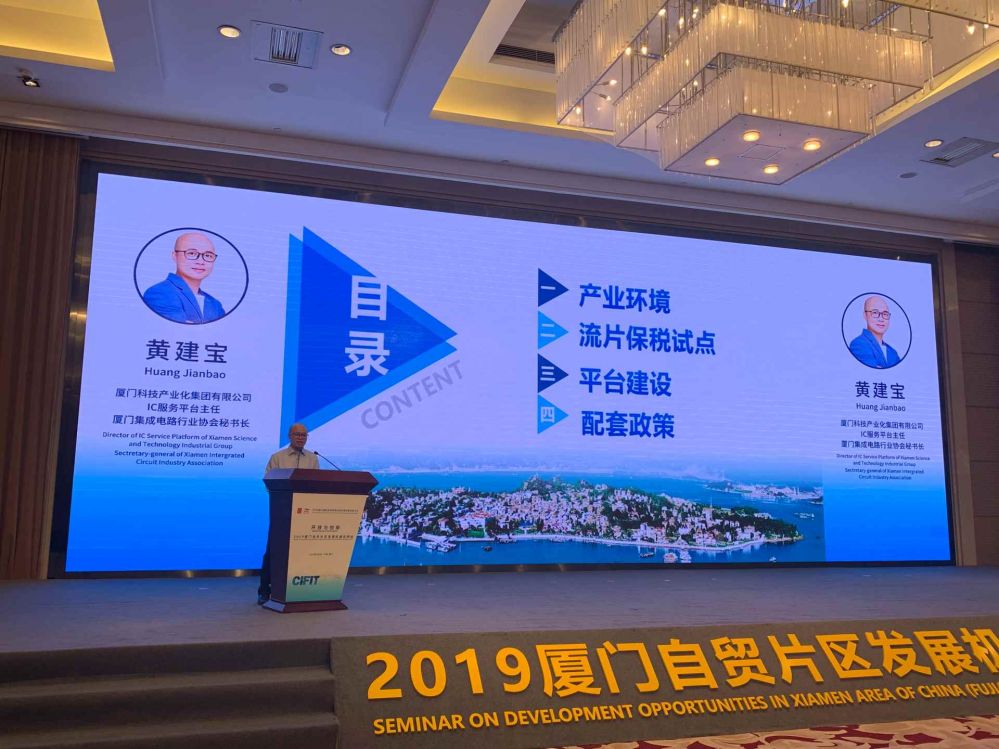 在廈門自貿(mào)片區(qū)推介環(huán)節(jié),科技集團(tuán)IC服務(wù)平臺(tái)主任黃建寶做了題為“自貿(mào)創(chuàng)‘芯’——集成電路雙創(chuàng)平臺(tái)”精彩的主題演講,從產(chǎn)業(yè)環(huán)境、流片保稅試點(diǎn)、平臺(tái)建設(shè)、配套政策等四個(gè)方面進(jìn)行推介。會(huì)后,澳大利亞籍客商專程與黃建寶主任交流了業(yè)務(wù)合作事宜,探討在半導(dǎo)體產(chǎn)業(yè)鏈開展有效合作。